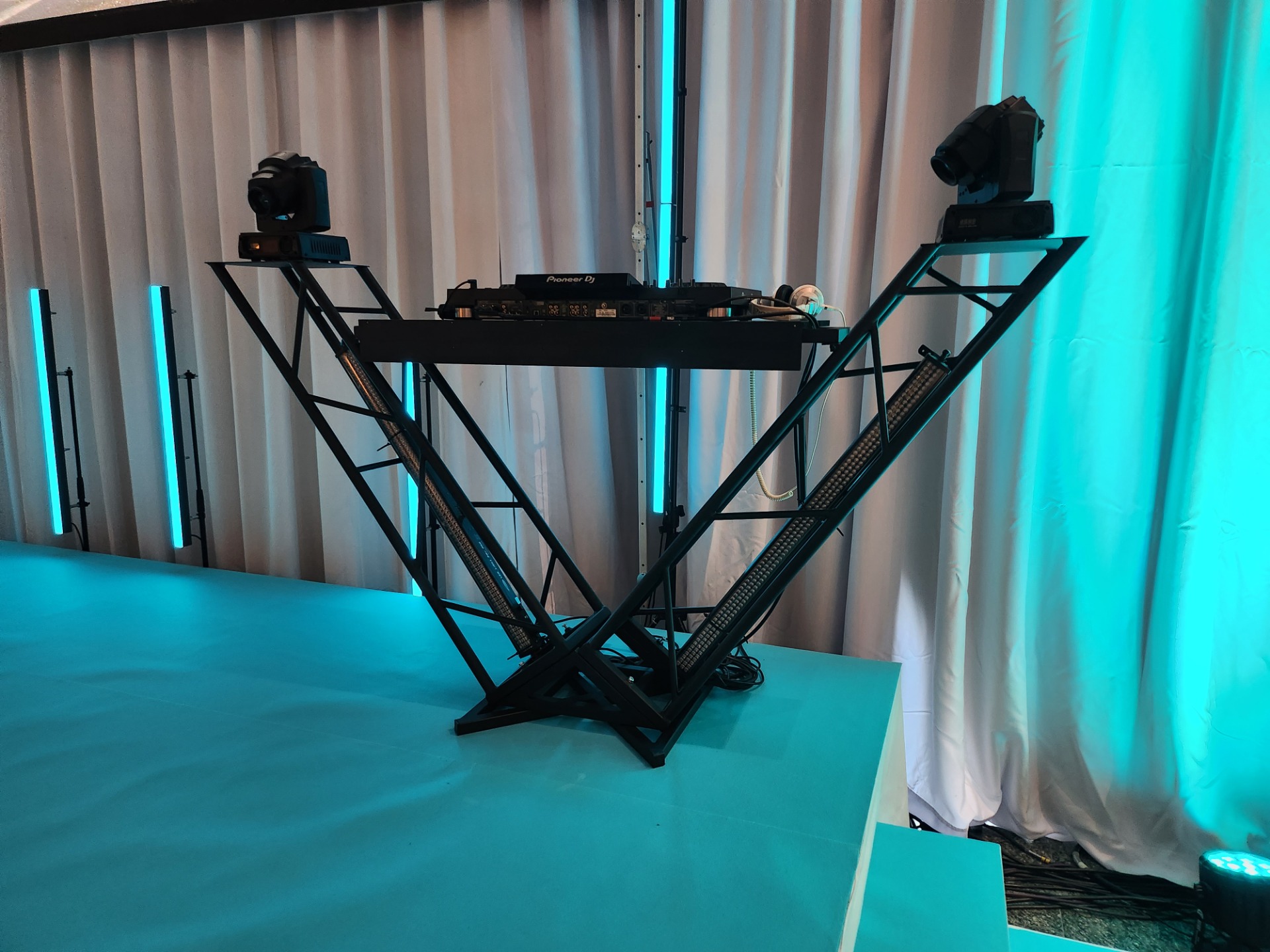 Het idee van de V Booth onstond bij twee doorgewinterde allround DJ's die zochten naar de ideale booth. En hoewel er vele mooie oplossingen op de markt zijn misten we een handige booth die handig te vervoeren, snel op en af te bouwen is, een trap op kan maar er ook nog leuk uitziet.